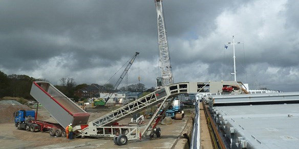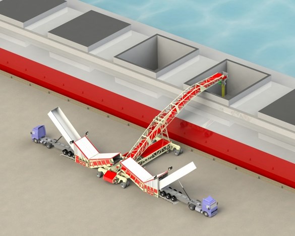 散料裝車機采用新技術,極大地提高工作效率,降低勞動強度,減少貨物損傷,縮短車船、碼頭的裝卸時間,是企業降低生產成本,提高效率和產品質量的有效設備。可以把港口,煤礦,砂石礦和物流中心,大型散貨存放地的散裝物料直接輸送到傳輸帶上并輸送到大型卡車上,裝車效率高,速度快,每小時可以裝料800噸以上。工作動力采用柴油機,行走為液壓馬達行走。履帶行走使用不同的復雜路況,移動快捷,方便。液壓先導操作簡單,靈活。