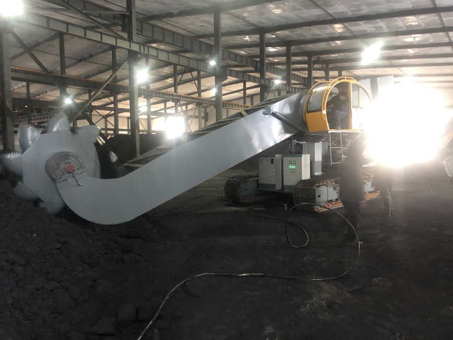 斗輪取料機,是指一種用于大型干散貨堆場的既能堆料又能取料的連續輸送的高效裝卸機械。由可俯仰和水平擺動的膠帶輸送臂及其前端的斗輪、機架、運行機構組成,膠帶可雙向運行,取料時由斗輪取料經輸送臂送出,堆料時則由主輸送機運來的貨物經由輸送臂投向堆場。